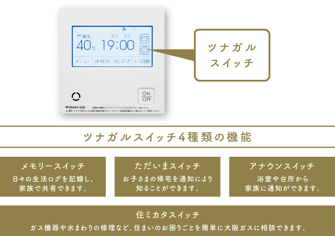 ※「ツナガルスイッチ」は大阪ガス(株)の商標です。