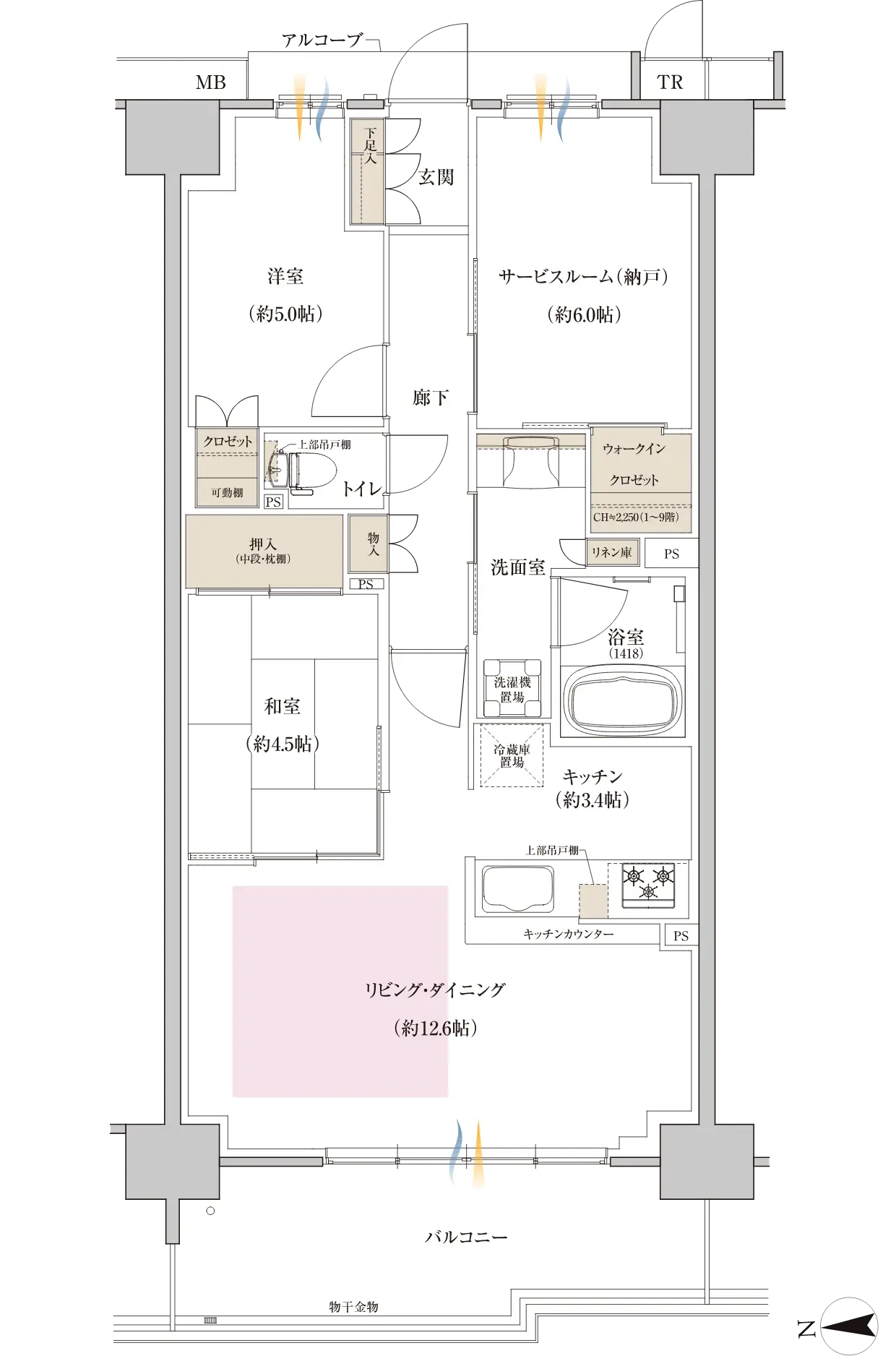 WIC=ウォークインクロゼット S=サービスルーム
