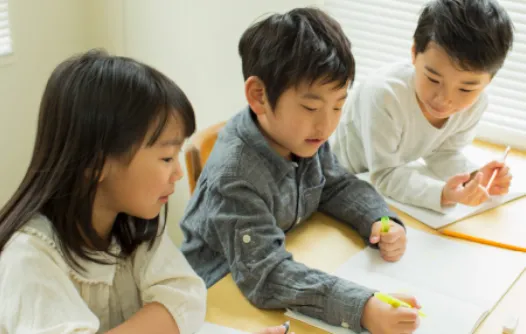 大型テーブルでは、子どもたちが集まっていっしょに宿題や課題ができます。
