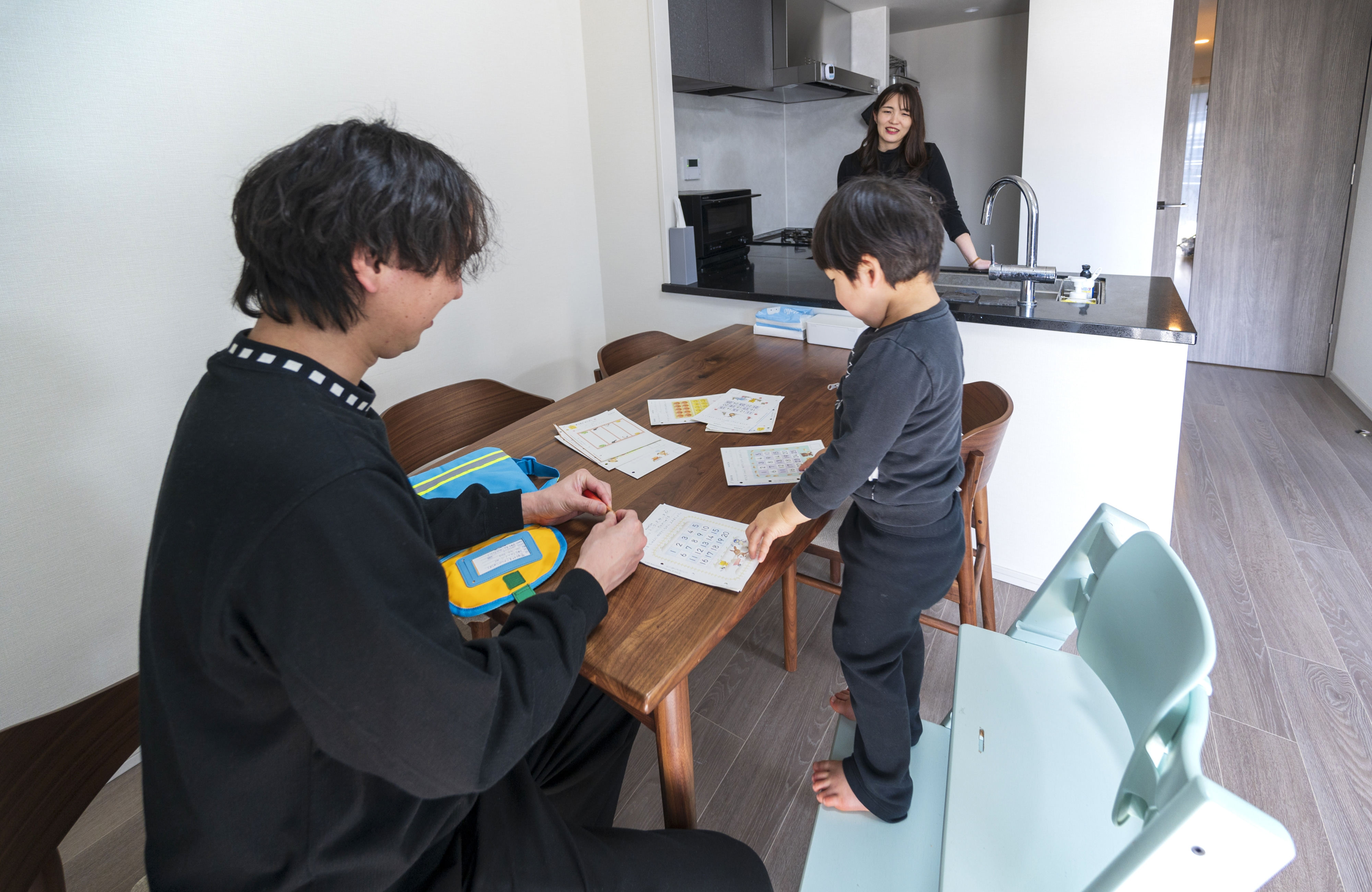 家族をいつも見守れる、広いリビング