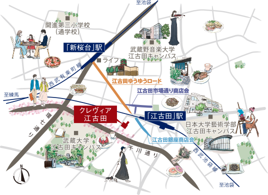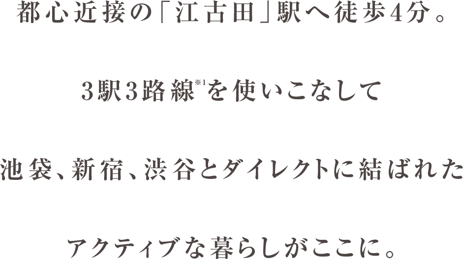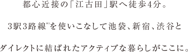 ※1:3駅3路線/西武池袋線「江古田」駅、西武有楽町線「新桜台」駅、都営大江戸線「新江古田」駅