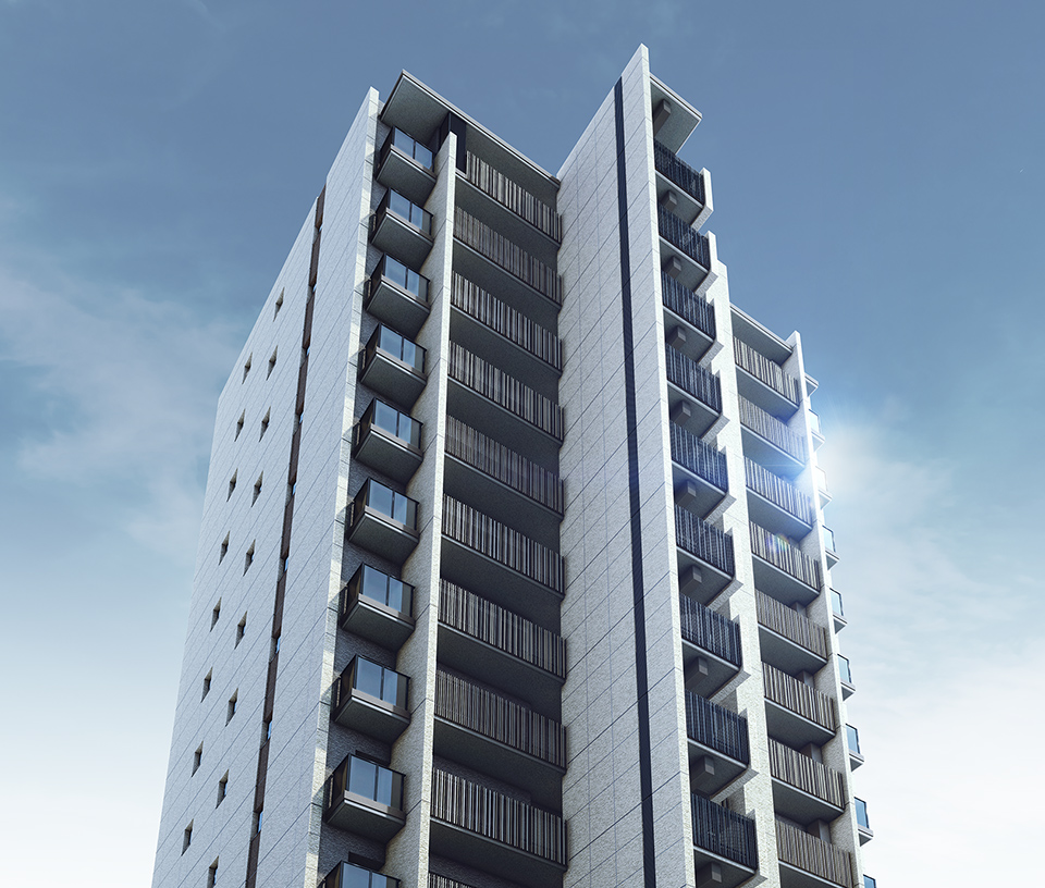 ※掲載の完成予想図は、計画段階の図面を基に描き起こしたもので、形状・色彩・外構・植栽等は実際とは異なります。形状の細部・設備機器・配管等は省略または簡略化の上、表現しております。今後、行政指導・施工上の理由等により、計画に変更が生じる場合があります。