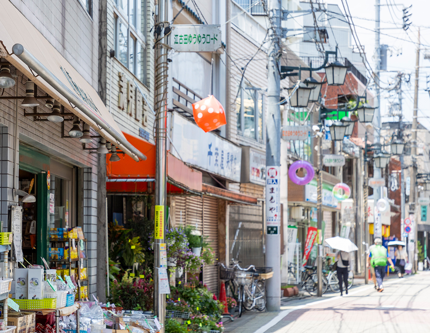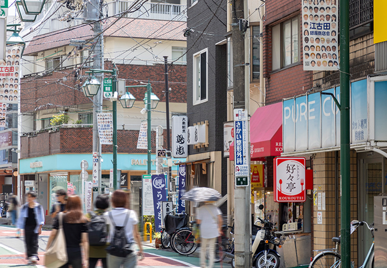 「江古田」駅の周りは、通りごとに個性のある商店街や