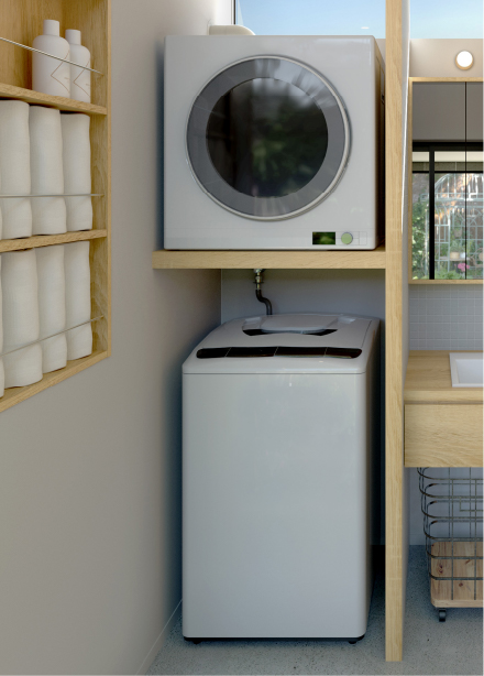80℃以上の温風でパワフルな乾燥が可能な ガス衣類乾燥機「乾太くん」を全戸に採用。 清潔で心地よい暮らしをご提案します。