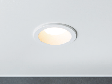 浴室の寛ぎ感を深める、落ち着いた雰囲気のダウンライトを採用しました。