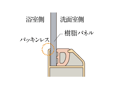カビやすい浴室側のパッキンをなくしたので、樹脂パネルとの段差が小さくなり、お掃除がカンタンに。見た目もすっきりと美しい仕様です。