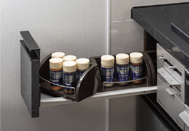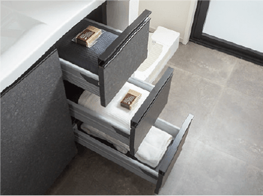 キャビネットの引出しには、ゆっくりと閉まるソフトクローズ機能を採用。