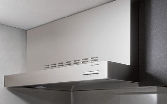 油汚れも簡単に拭き取れるホーロー整流板をレンジフードに採用。デザイン性にも配慮したステンレス製です。