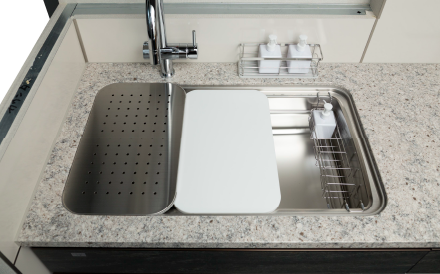 簡単に取り外しができ、そのまま洗えてお手入れしやすいカウンターを採用しました。