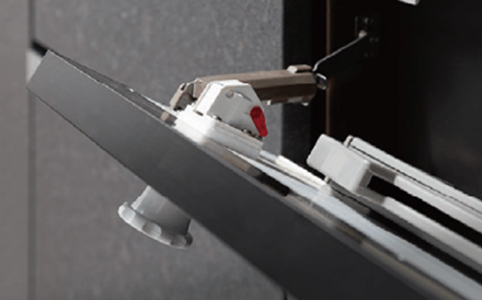 キッチン吊戸は、地震時には一定以上の揺れに反応して扉をロック。物の落下を抑えます。