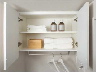 洗濯機上部の空間を活かし、洗剤・洗濯用の小物等の収納に便利な吊戸棚を設置しました。