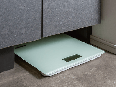 洗面化粧台下に、ヘルスメーターが収まるスペースを設けました。