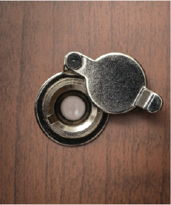 来訪者を確認できるドアスコープを玄関ドアに設置。外からの在室確認を困難にするカバー付です。