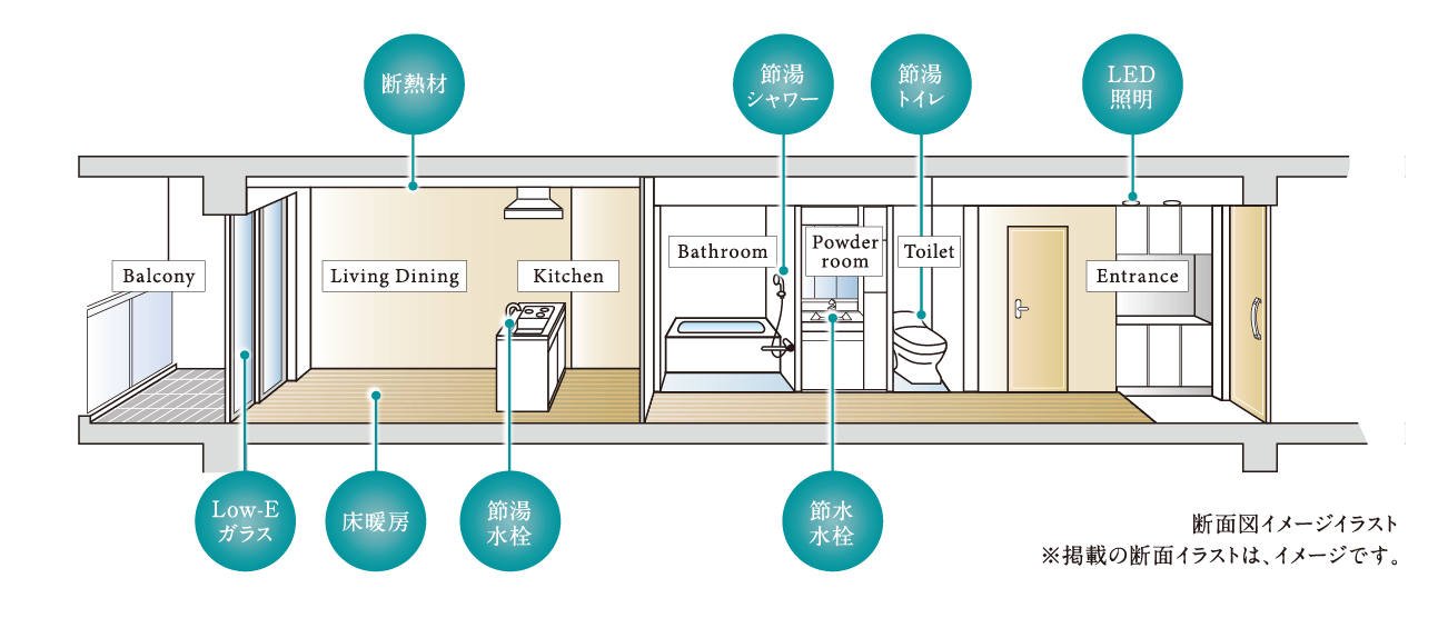 暮らしの中で発生する二酸化炭素を抑制し、低炭素化に貢献する建築物に与えられるのが「低炭素建築物」認定です。「クレヴィア板橋区役所前」では、高効率の機器や断熱性の高い仕様等の採用でこの認定を取得予定。日々の快適と環境への優しさを両立した暮らしを実現できます。また省エネ性能の高さから光熱費の抑制も可能。環境にも家計にも優しいマンションです。