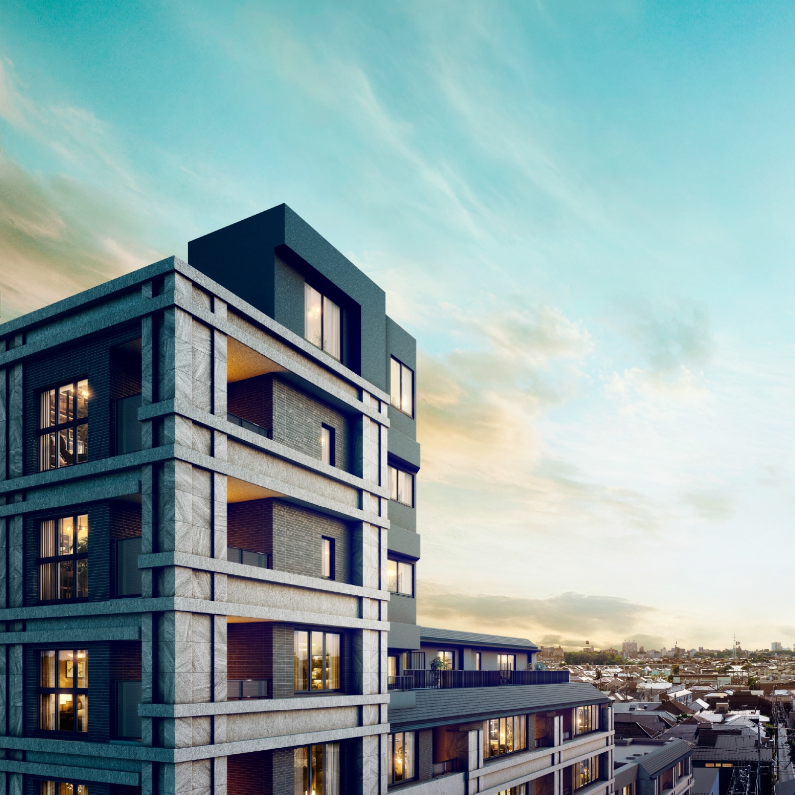 内廊下×南向き中心の都心直結アクセスを誇る都市型邸宅。