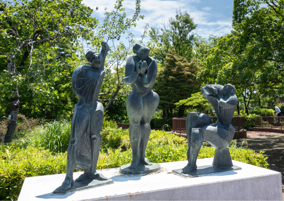 - 約61,000㎡の広大な緑地「荒川自然公園」。バラやアジサイなどの四季折々の樹木・草花が広がる園内では、白鳥やカルガモなどの水鳥、ホタルやカブトムシといった生き物のほか、彫刻やオブジェなどのアート作品も目にすることができます。“新東京百景”に選定された景勝地でもあり、多世代に親しまれている憩いのスポットです。