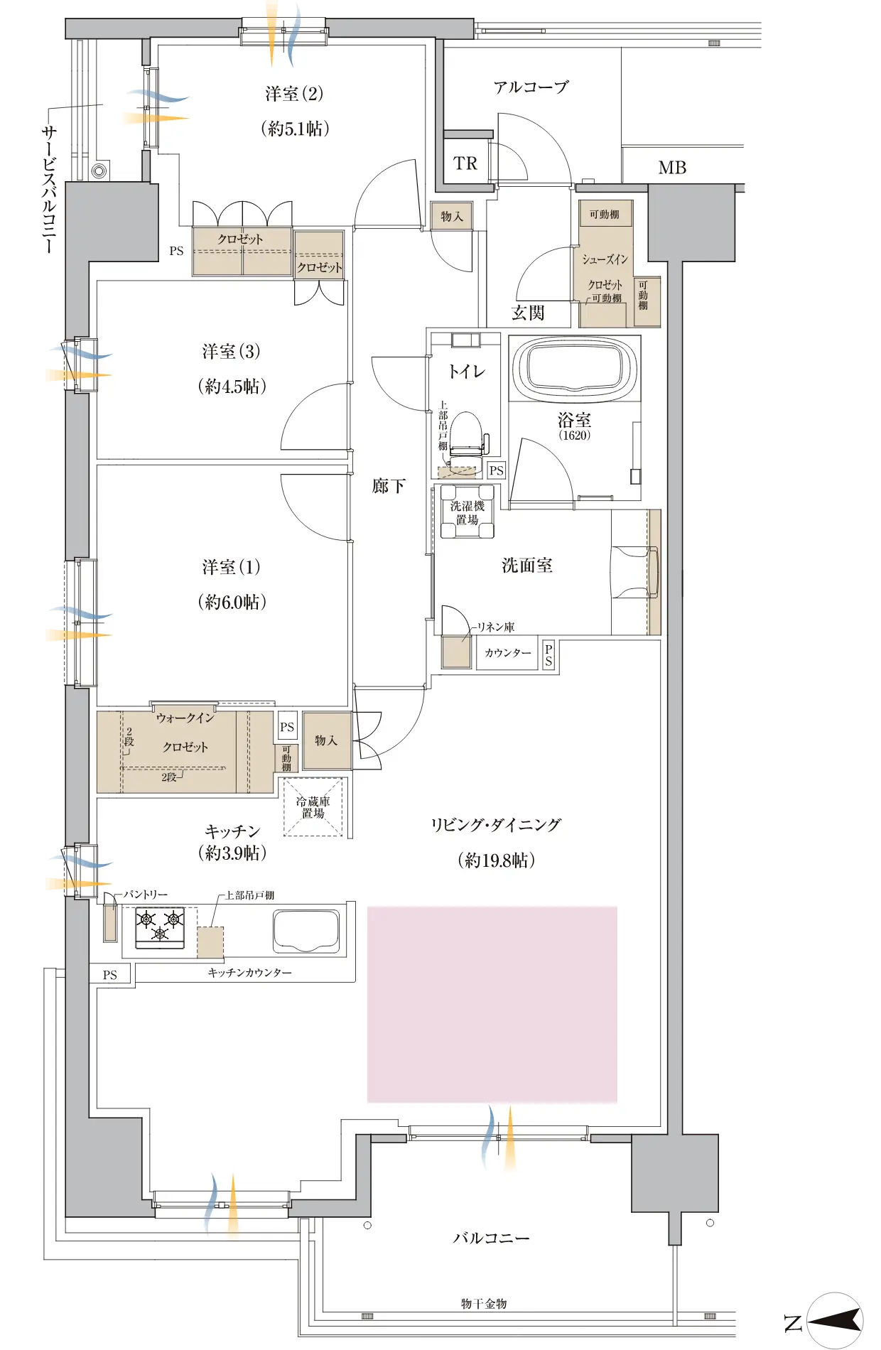 WIC=ウォークインクロゼット S=サービスルーム