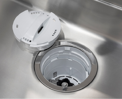 シンクの排水口部分で生ごみを粉砕処理するため生ごみ処理の負担を軽減します。
