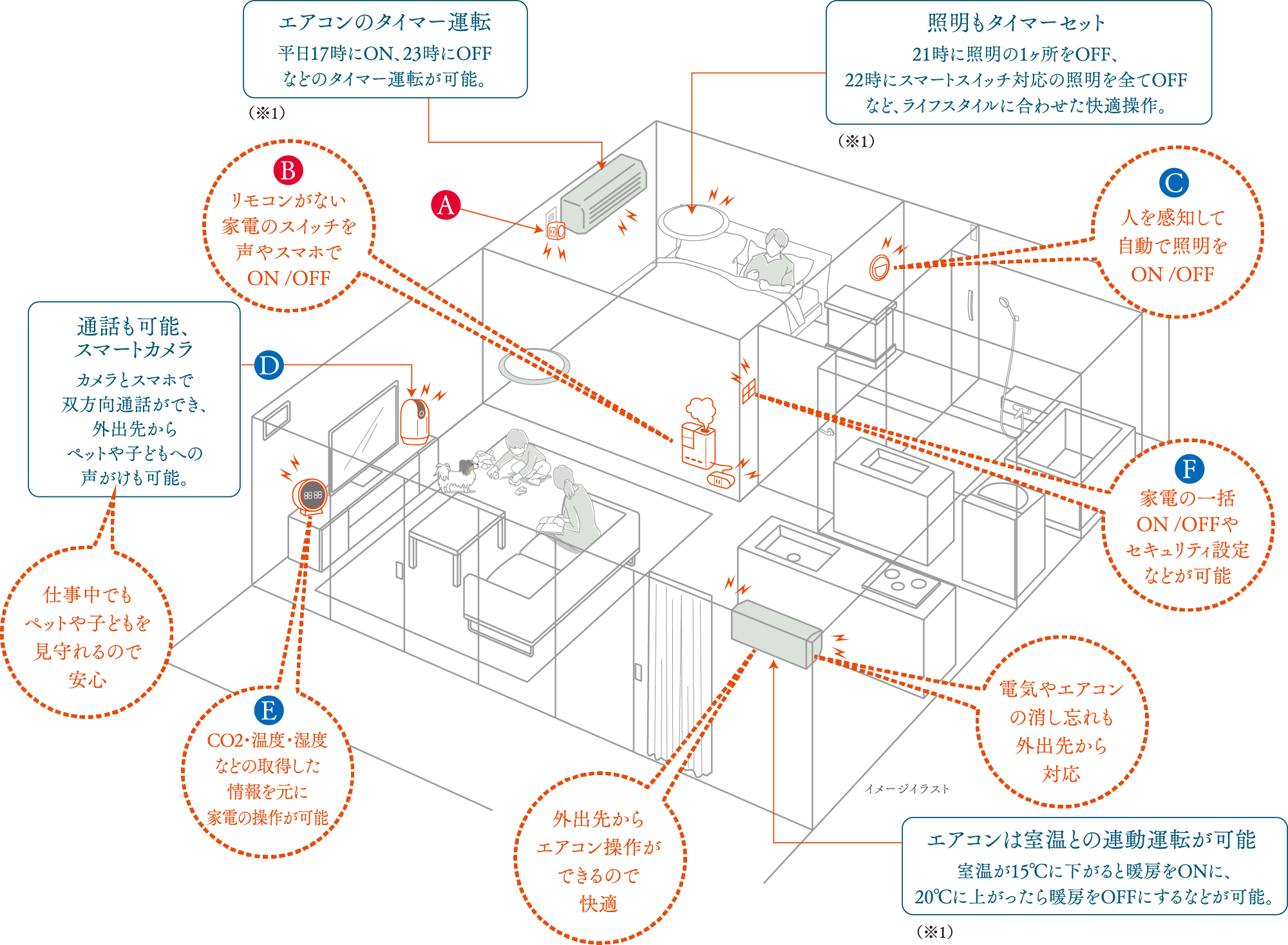 IoTによる家電や機器、セキュリティの連携で、より自由に、快適に過ごすことができる先進のスマートライフを実現しています。