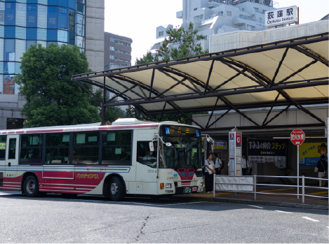徒歩2分のバス停から「荻窪」駅へも